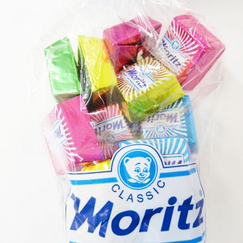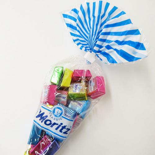 袋の中には、色とりどりにラッピングされたキューブ型のアイス チョコレートが入っています。