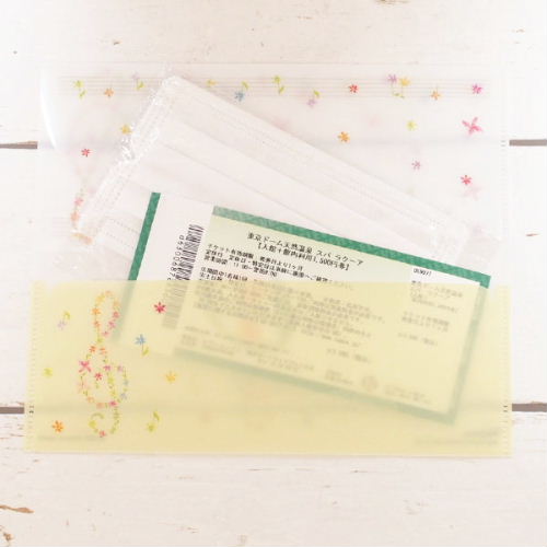 五線譜柄、クリアフォルダー素材のチケットホルダーです。音楽のチケットを入れるのにぴったりです。A4幅のコンビニのチケットに限らず、商品券・通帳・多当袋・ポチ袋・回数券・一筆箋など使い方は色々です。