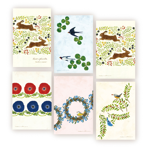 季節のお便りにひと言添えて送ったり、そのまま部屋に飾ってもかわいい浅野みどりさんのはがき箋。