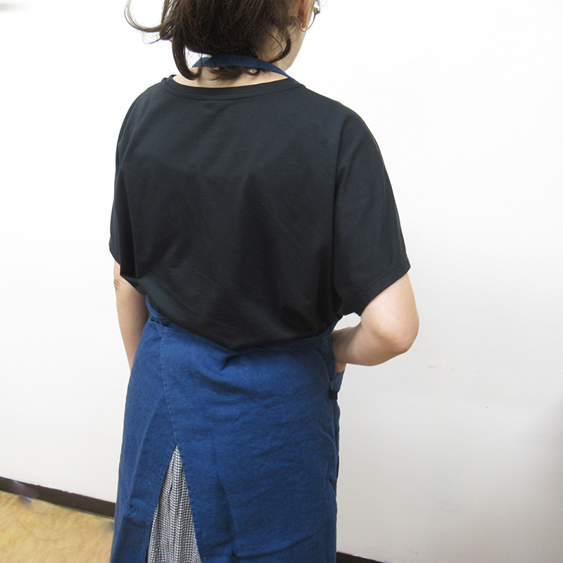 エプロンを着たままかがんだり椅子に座っても身体を締め付けることがなく、ずっと着ていてもストレスがありません。