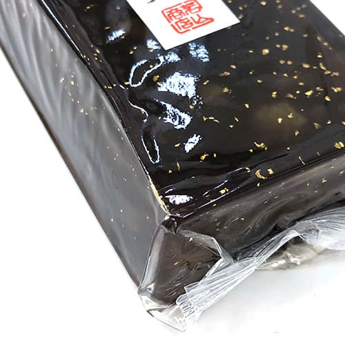 お歳暮やお年賀、おせち料理の一品にもあう、豪華な金箔入り栗羊羹です。 原材料名:砂糖、小豆、栗、寒天、還元澱粉分解物/トレハロース、着色料(金箔、クチナシ色素)