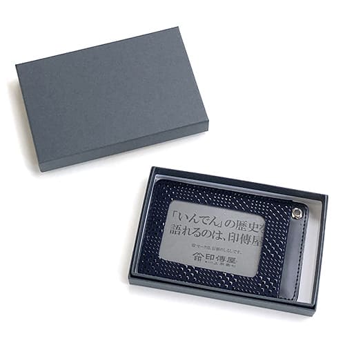 印傳屋 パス入F【紺地x黒】