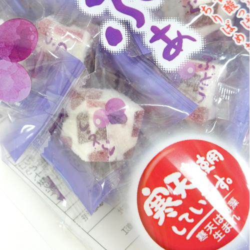 備考 原材料名:水あめ(国内製造)、砂糖、オリゴ糖、エリスリトール、濃縮ぶどう果汁、卵白、寒天、粉末オブラート、でんぷん加工品、はちみつ/環状オリゴ糖、着色料(赤キャベツ、ウコン)、クエン酸、香料(一部に卵・大豆を含む)