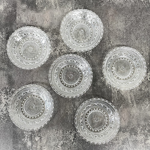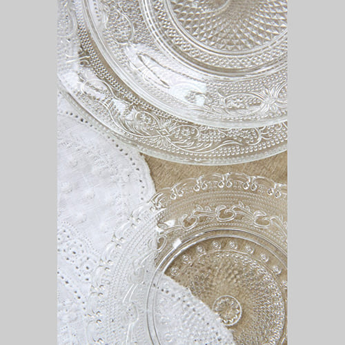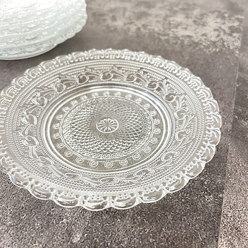 清潔感のある透明なプレートは、シャビーシックなインテリアやテーブルにおすすめです。取り皿にしたり、フルーツ皿にしたり、小ぶりで使いやすいプレートです。6枚1セットです。