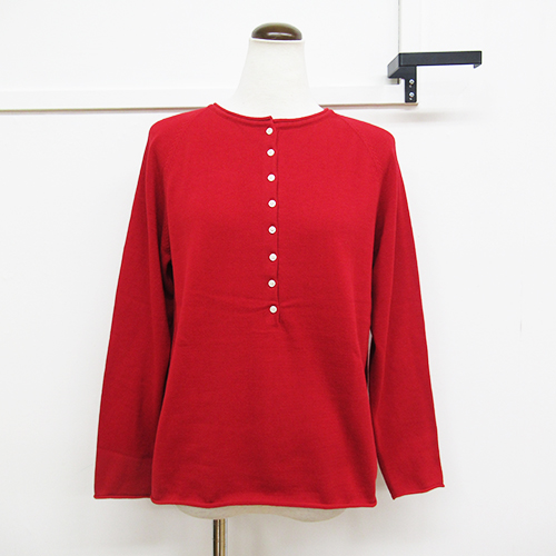 柔らかな風合いのコットンの糸を使用したクルーネックプルオーバー。 シンプルなデザイン、適度にフィットするシルエットはどんなボトムとも相性がよく日々のコーディネートに役立ちます。   釦デザインを後ろにしたり、前で開けてTシャツとレイヤードしても素敵です。