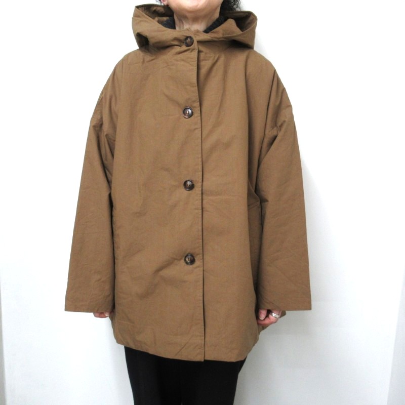 mao made ミディアム丈Aラインフード付きコート /コヨーテ15