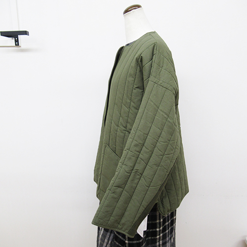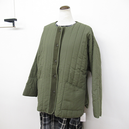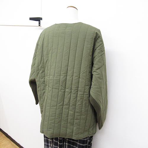 細番手の糸を子密度に織り、適度なハリ感をもたせたコットンタイプライターを使用した中綿キルティングとやわらかな風合いのコットンニットを切り替えたジャケット。