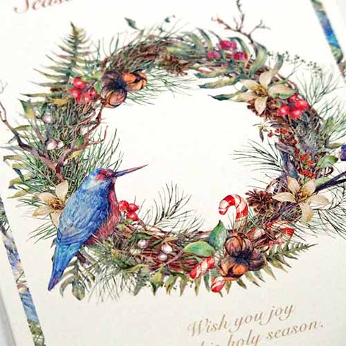 フロンティア クリスマスカード クラシック /青い鳥とリース