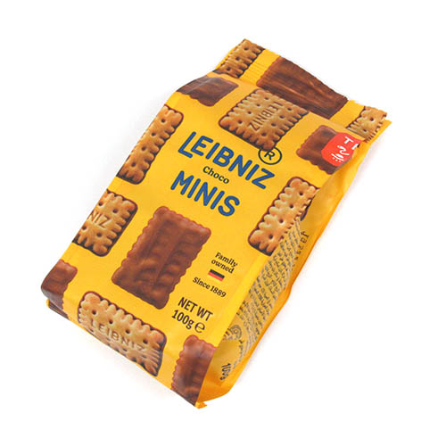 ライプニッツミニーズビスケットの片面に、ミルクチョコレートをコーティングしました。