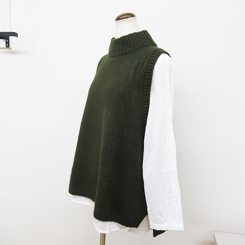 ふっくらとしたボリュームがあり、やわらかでモチモチした風合いが気持ちのいいモックネックベスト さり気ないAラインシルエット、大きめにざっくり開いたアームホールのおかげで シンプルながらも今っぽい雰囲気を醸し出してくれる一枚です。 適度にゆとりのある首回り、チクチク感のない優しい着心地なのでリラックスして着られます。