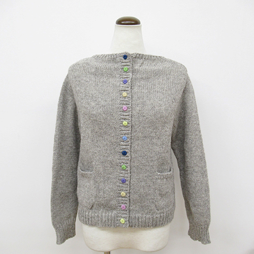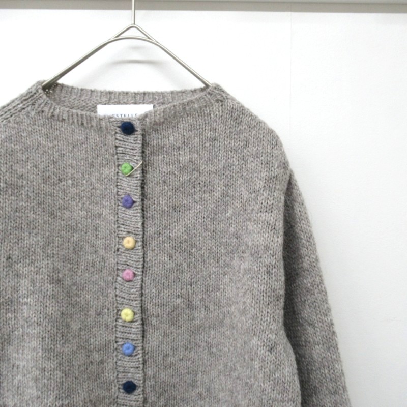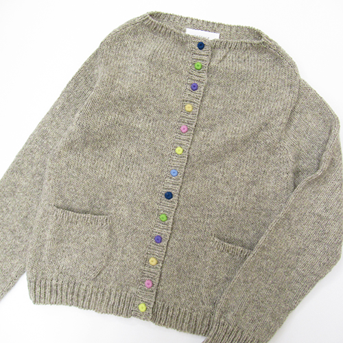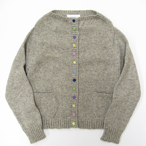 ハンドメイドニットの温もりを感じる人気のペルーニット。 Peruの人気デザイン、ひとつひとつの釦を色変えしたカラフル釦のカーディガンです。
