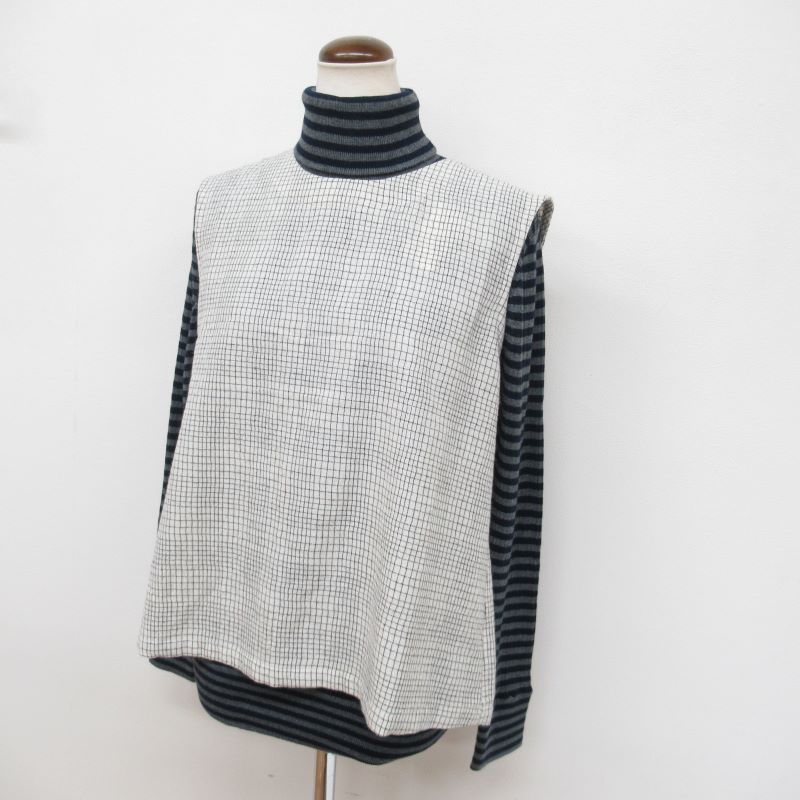 DAYS 袖ストライプ切替チュニックプルオーバー WH01 【日本製】