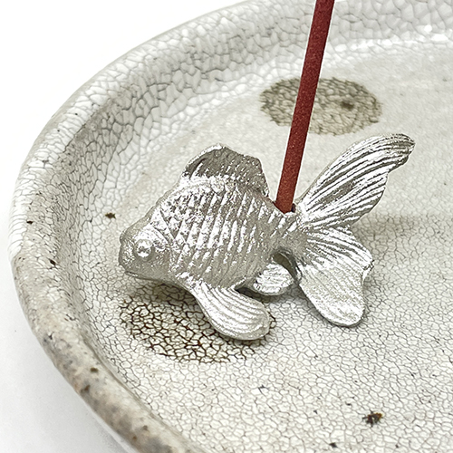 日本の職人さんの手により1つ1つ丁寧に作り上げられた、錫製の金魚のお香立て。香立ての受け皿を葉の形にしたりしても素敵です。