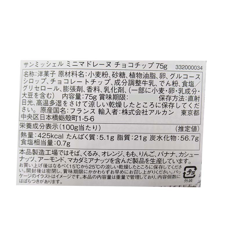| 備考 | 【サンミッシェル社】 創立1905年の100年を超える歴史を持つ企業。菓子職人ジョセフ・グルリエが作る「ガレット」「マドレーヌ」は、新鮮で安全なフランス産の原料を使った伝統のレシピを守り続け、フランスで長く愛されているお菓子になりました。 |