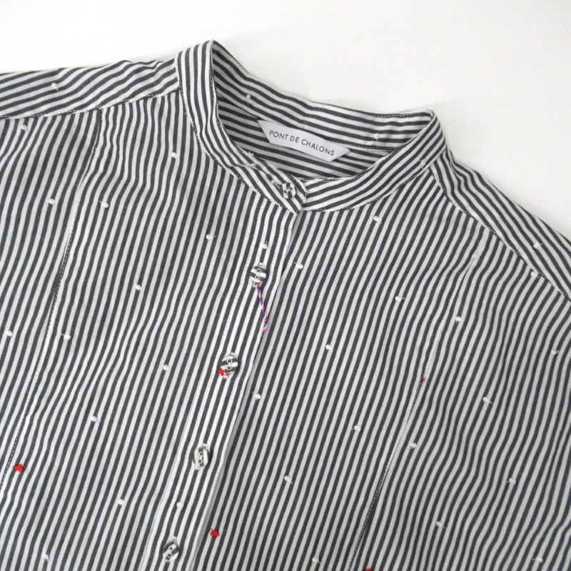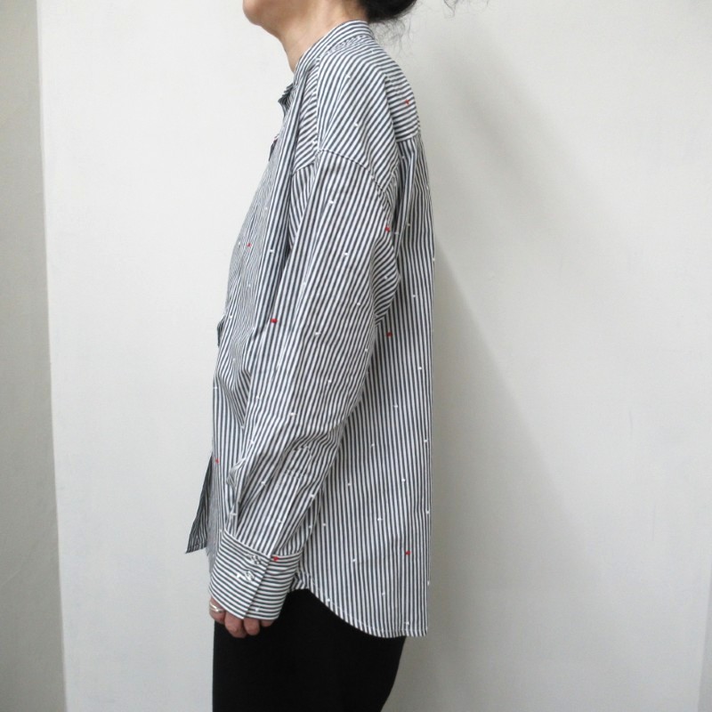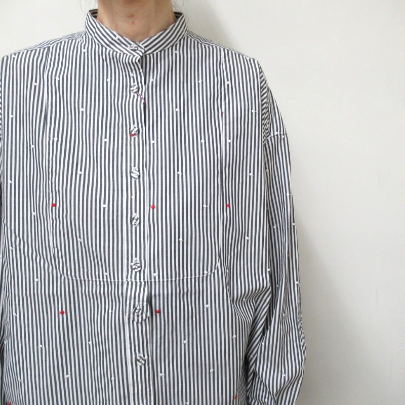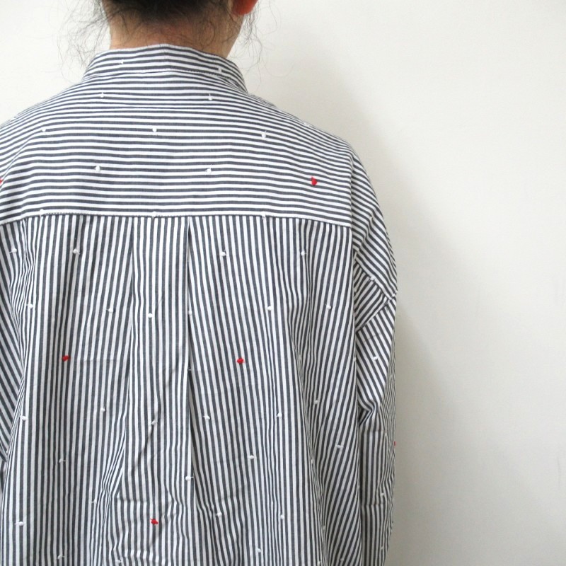 PONT DE CHALONS ドットハート刺繍ビブヨークシャツ /BKストライプ18