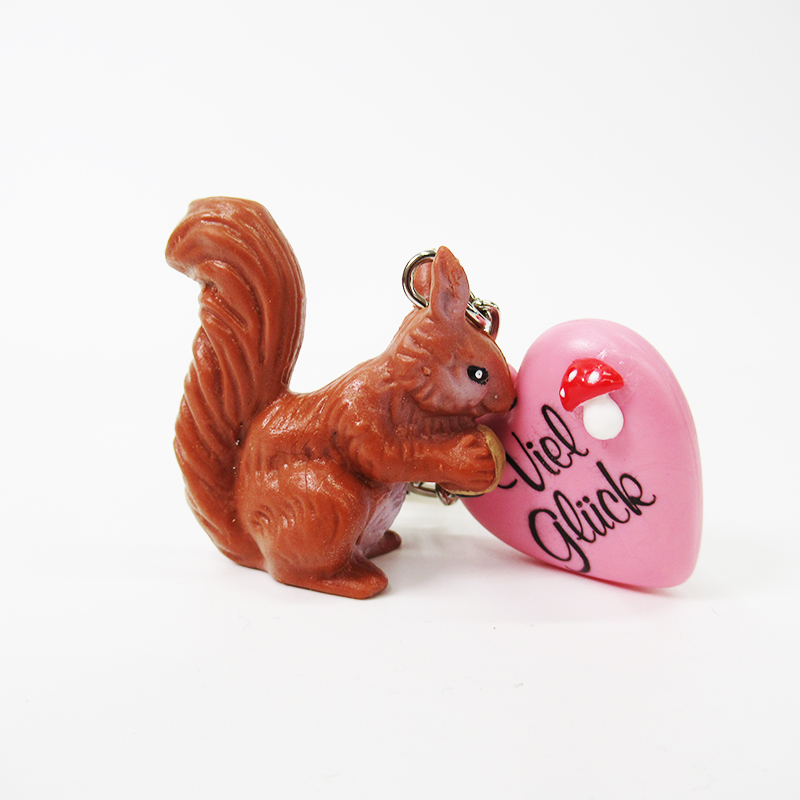 木の実を両手で抱えて食べている、愛らしいリスのキーチェーン。