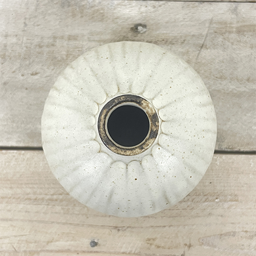 益子焼窯元わかさま陶芸のkinariシリーズ。マットな質感の粉引の器で、土の素朴さを感じるような手触りが心地よい、ナチュラルで優しい雰囲気のシリーズです。 ナチュラルな佇まいが美しい小さめのフラワーベース。優しい生成り色の釉薬で、シンプル&モダンに仕上げました。 ※実はディスプレイになります。