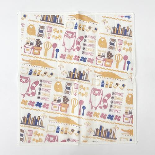 真っ白なふきんをキャンパスに見立てて、上品で華やかな絵柄をちりばめました。まるで絵便りのような蚊帳生地プリントふきんです。折り目も細かく詰まっているので丈夫です。大き目サイズで食器拭きにもおすすめです。