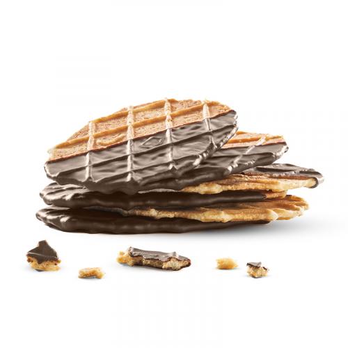 バタークリスプにベルジャンダークチョコレートをトッピングしました。 原材料名:小麦粉、砂糖、バター、チョコレート(カカオマス、砂糖、ココアバター、クリームパウダー(乳成分を含む))卵、食塩/膨張剤、乳化剤(大豆由来)