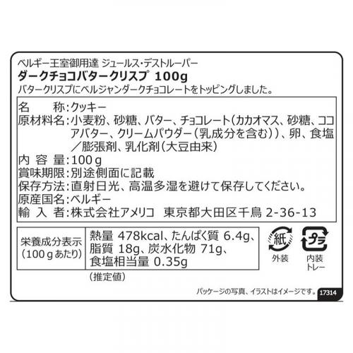 備考 ジュールス・デストルーパー社は1886年創業のベルギーを代表するプレミアムクッキーの老舗で、ベルギー王室御用達のクッキーメーカーでもあります。良質なバターなど厳選した自然の素材にこだわり、人工添加物を使用しないその製法は創業以来忠実に受け継がれています。