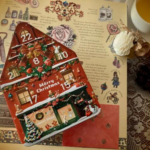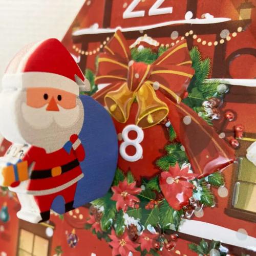 家の周りに1~24の数字が書いてありますので、磁石の付いたサンタのオーナメントを移動させていき、 12月1日から12月24日までをカウントダウンしていただける新商品です。