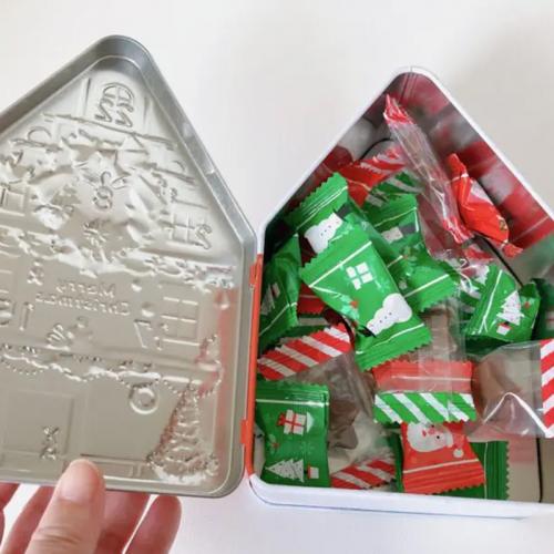 XMAS ハウス缶カレンダー(木製オーナメント付き) お菓子入り