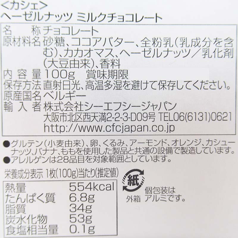 Cachet(カシェ) 板チョコ ヘーゼルナッツ ミルクチョコレート