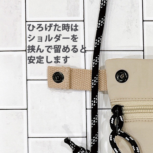 PEANUTS 2024 Spring & Summer Collection Thermo-Keeper デイリー使いだからこそ、いつでも清潔に! 洗濯機で丸洗いできます。 酷暑に欠かせない冷却アイテムや、溶けやすいコスメ・お菓子など収納できるサコッシュが新登場。 中に入れるものの大きさにあわせて、サイズを変更できるのも優れものです! [OPEN] ネッククーラーや大きめの保冷剤などはひろげた状態で。 [BIFOLD(二つ折り)] 半分にたたみ、両サイドのホックを留めればスマホサイズに。