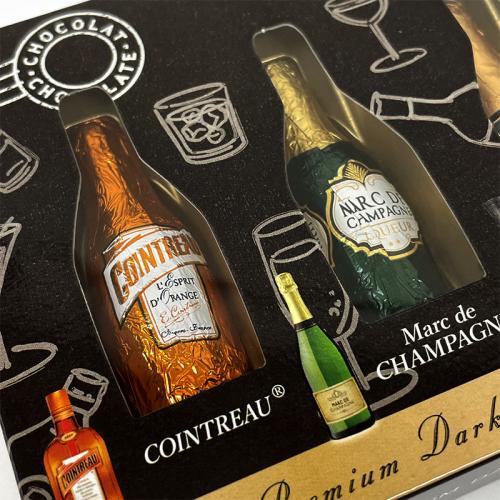 香り高いリキュールをダークチョコでコーティング。コアントロー、マールドシャンパーニュ、カミュ、ラベル5、セントジェームスの5種類の味を比べていただけます。 内容量:5個