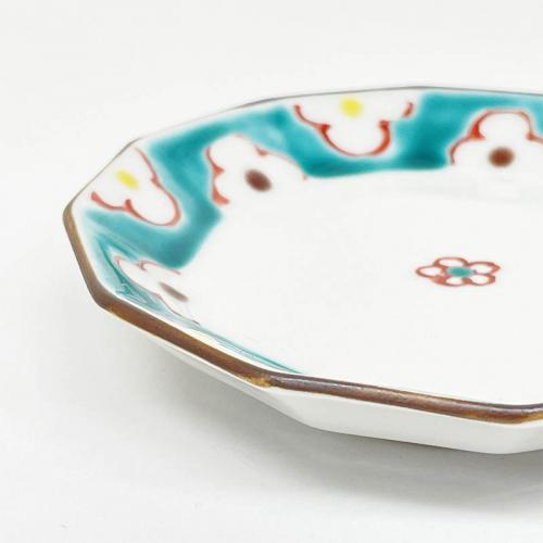 九谷の伝統的な色の釉薬を使って、安東眉石窯の絵付け職人がさんが一皿一皿手描きで描いた模様はとても繊細で美しく、石川県の伝統工芸「九谷焼き」の魅力が伝わってきます。 小皿としてでだけでなく、コースターとしてお使い頂くのも◎