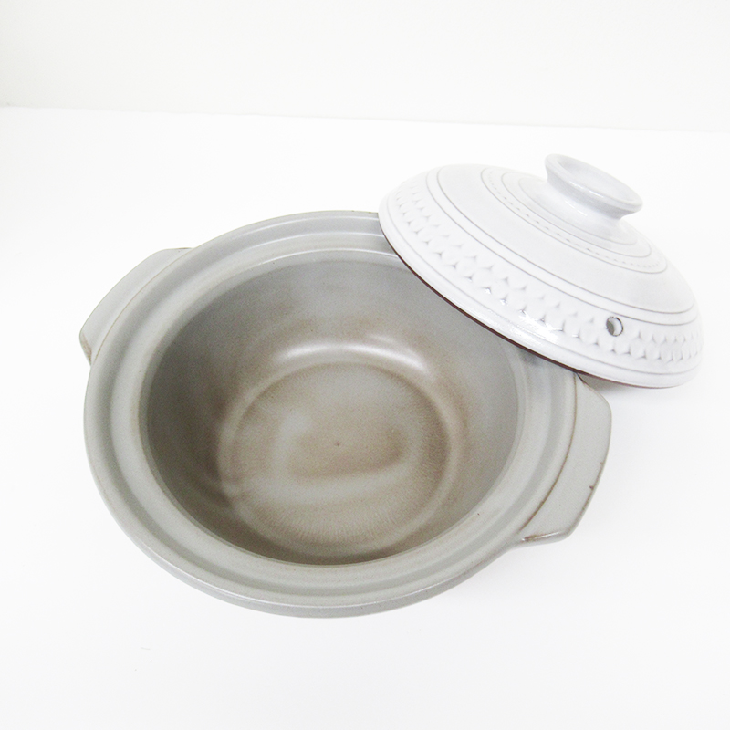 備考 | ●萬古焼の土鍋● 三重県四日市の地で、江戸時代に始まる、日本を代表する陶器のひとつです。 ペタライトを用いた耐熱陶土を開発したことでも知られています。耐熱陶土の発展以降、時代のニーズに合わせて様々な土鍋が開発され、今日では日本の土鍋のシェアの80%以上は萬古焼となりました。 萬古焼は、まさに「土鍋の名産地」といえます |