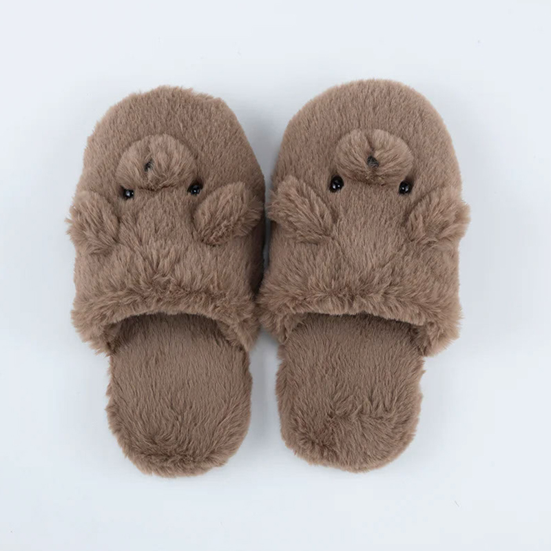 テディウォーマーのくまをそのままスリッパにしたような、ぬいぐるみみたいに可愛いスリッパ。