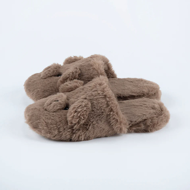 ふわふわの柔らかいファーで、やみつきになる履き心地! くまの顔があしらわれた、ぬいぐるみみたいな「テディスリッパ」