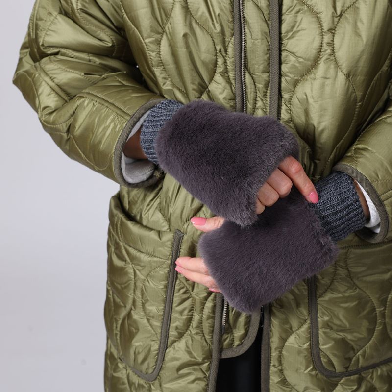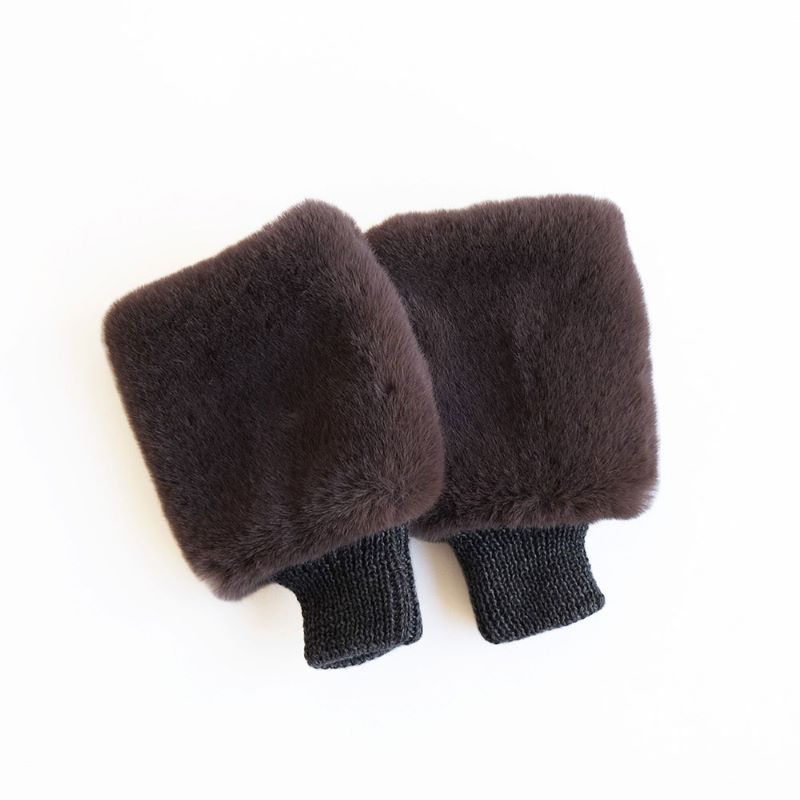 shesay 手元が華やかに見えるファーとニットのハンドウォーマー DGY