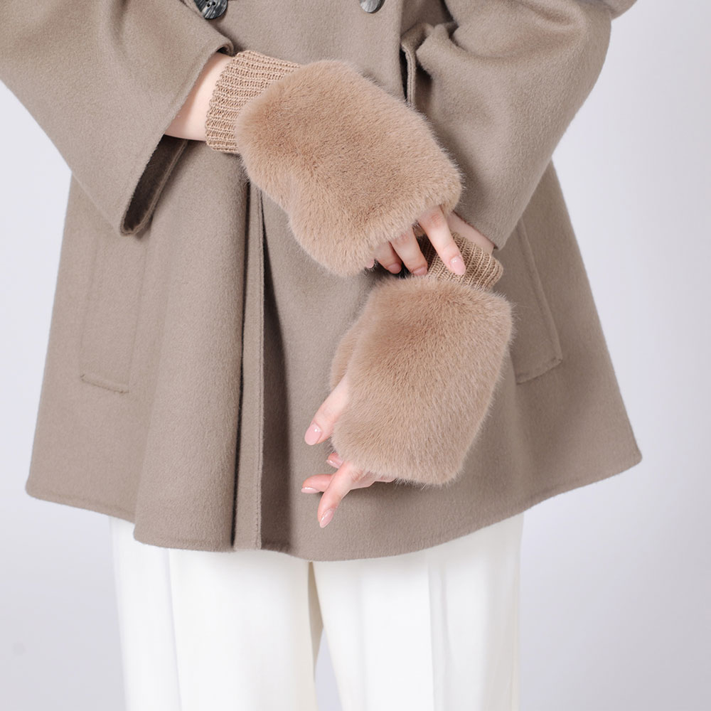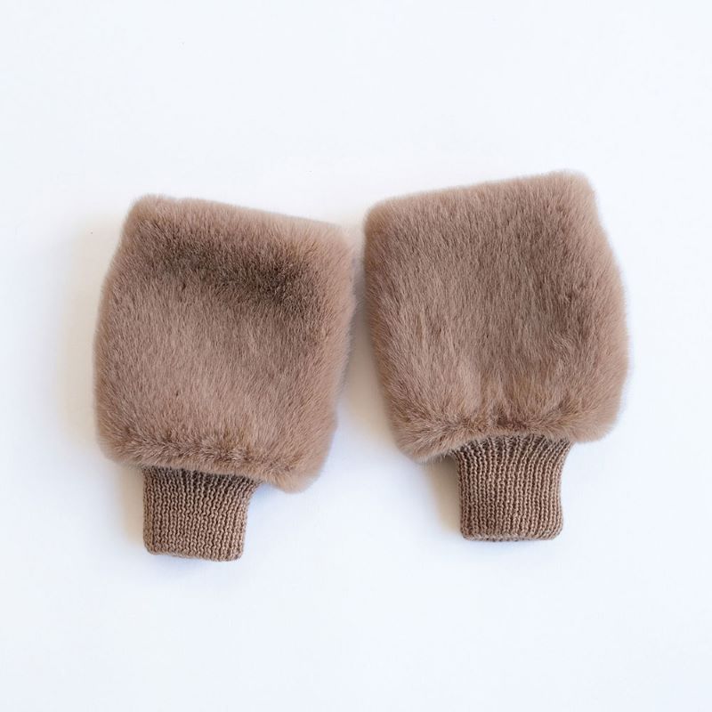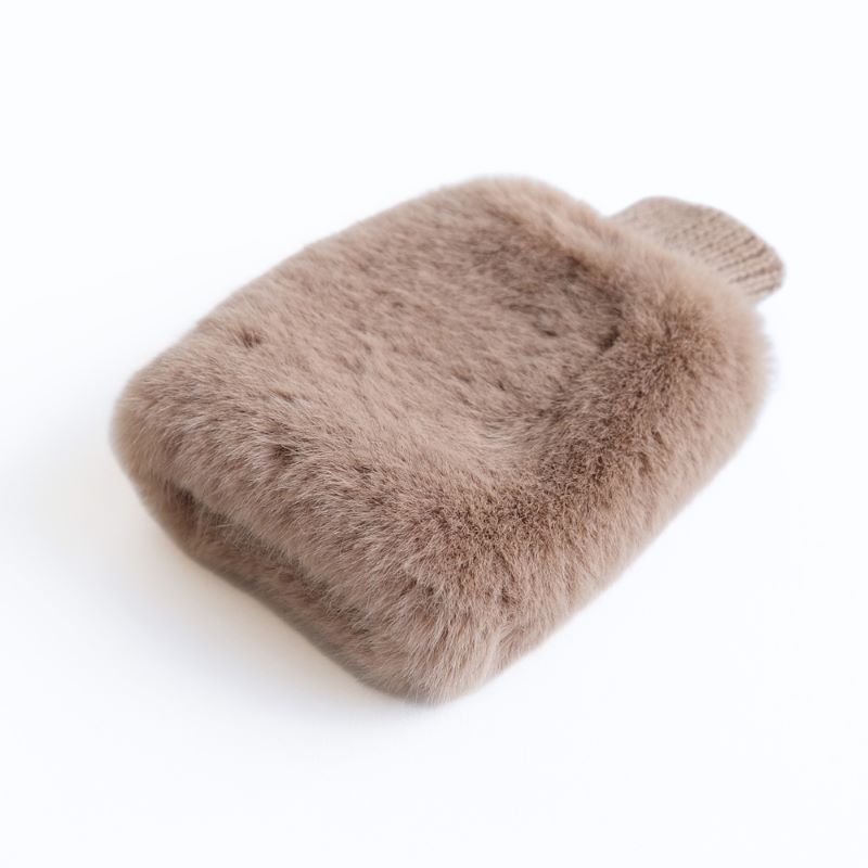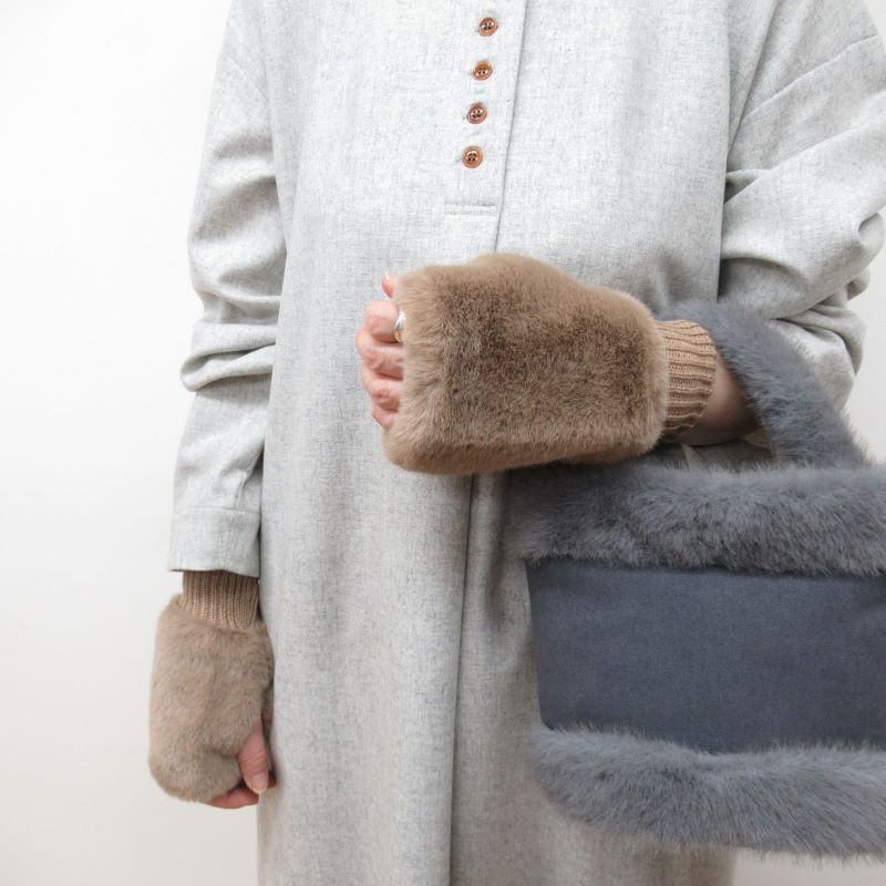 shesay 手元が華やかに見えるファーとニットのハンドウォーマー BE