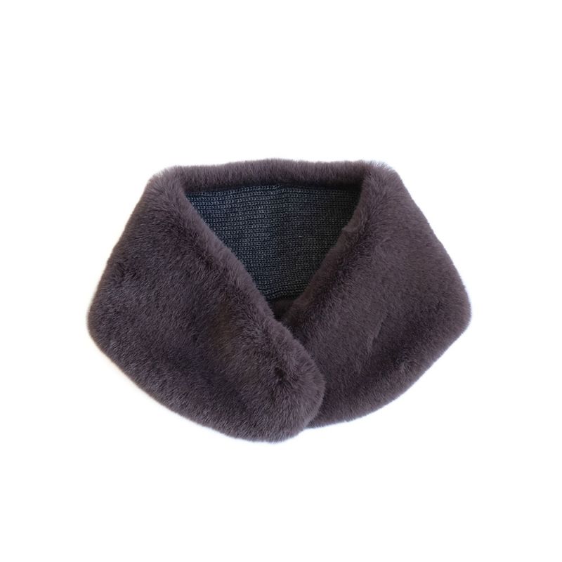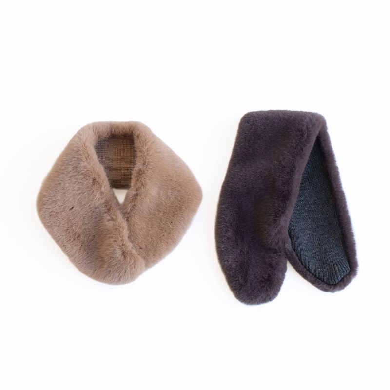 上質でなめらかなファーと、柔らかく編み立てたニット素材のリバーシブル仕立て。