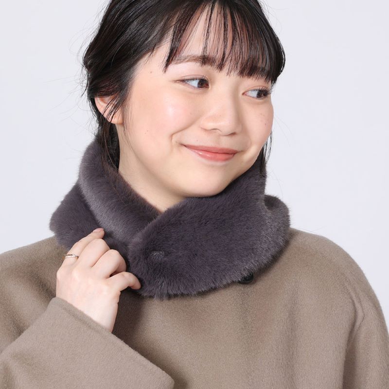 shesay 首元が華やかにみえる ファーとニットのミニショール DG