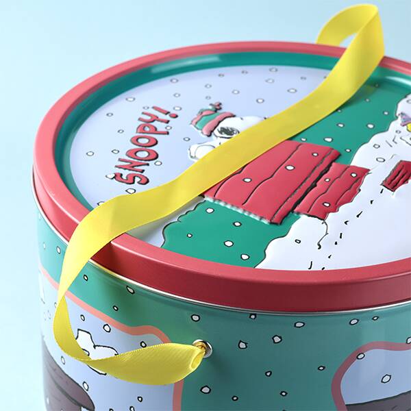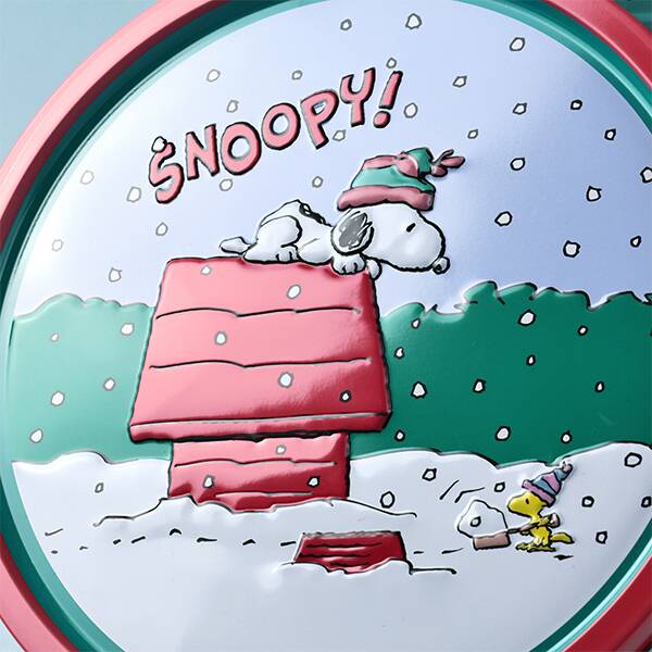 スヌーピーのデザインがかわいい、ビッグティン。フタにはエンボス入り!