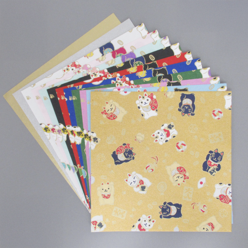 招き猫 おりがみ 10色・金・銀 各1枚 15cm角