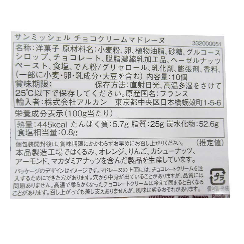 | 備考 | 【サンミッシェル社】 創立1905年の100年を超える歴史を持つ企業。菓子職人ジョセフ・グルリエが作る「ガレット」「マドレーヌ」は、新鮮で安全なフランス産の原料を使った伝統のレシピを守り続け、フランスで長く愛されているお菓子になりました。 |