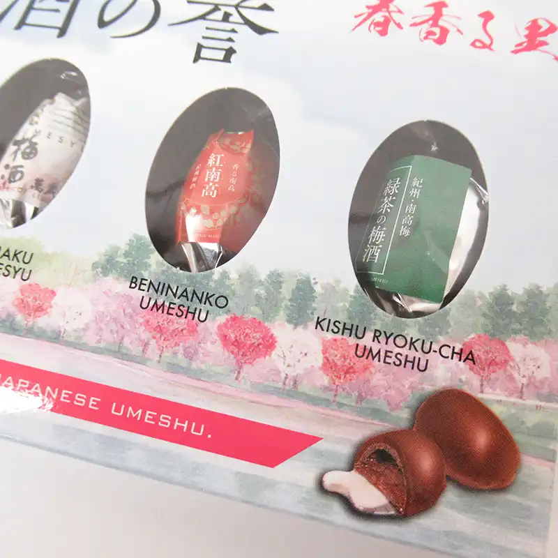 バラエティ豊かな梅酒を使用したボンボンチョコを5個アソートしました。