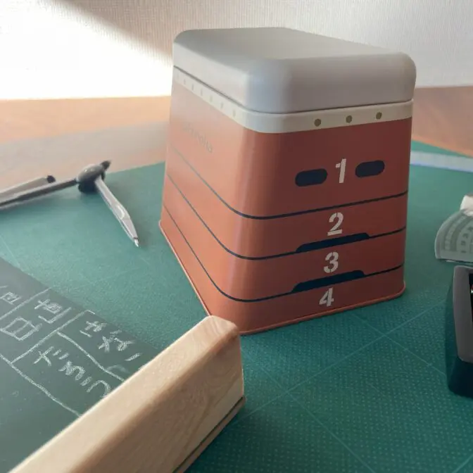 跳び箱をモチーフにした缶です。