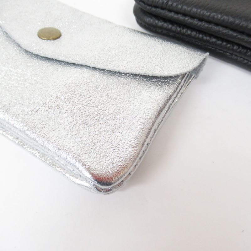 牛革にシボ加工とメタリック加工が施されたコンパクトなお財布。