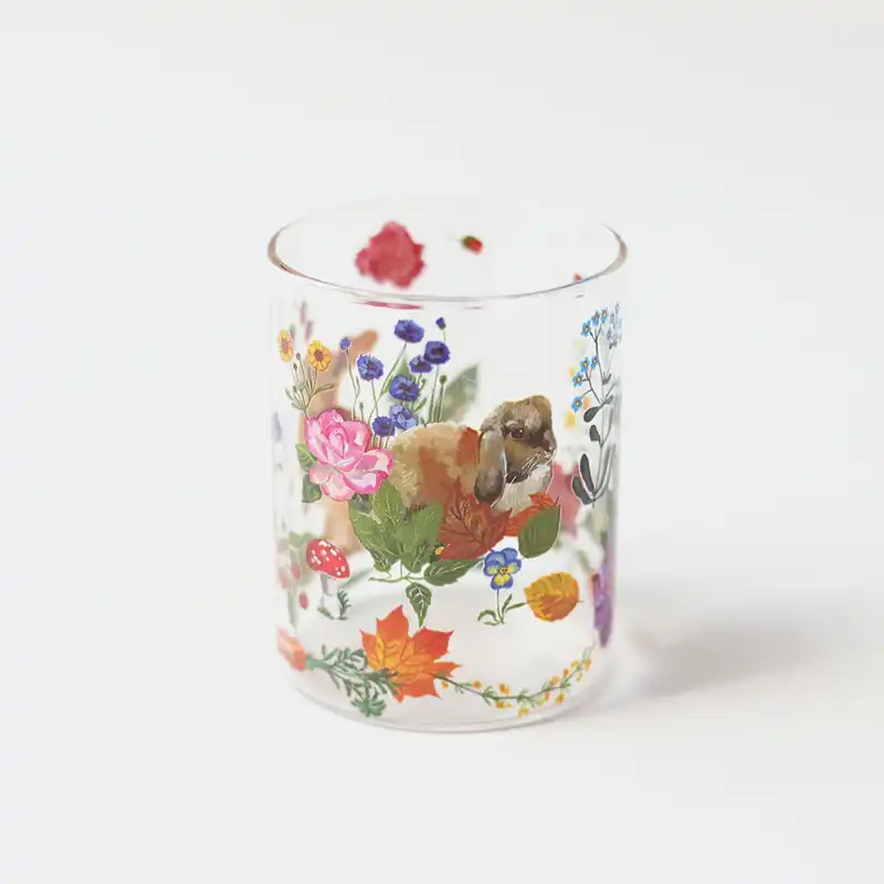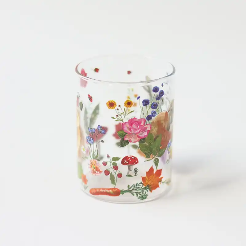 ガラスの繊細な雰囲気がイラストのアート性を一層あざやかに引き立たせ、テーブルを彩ってくれます。