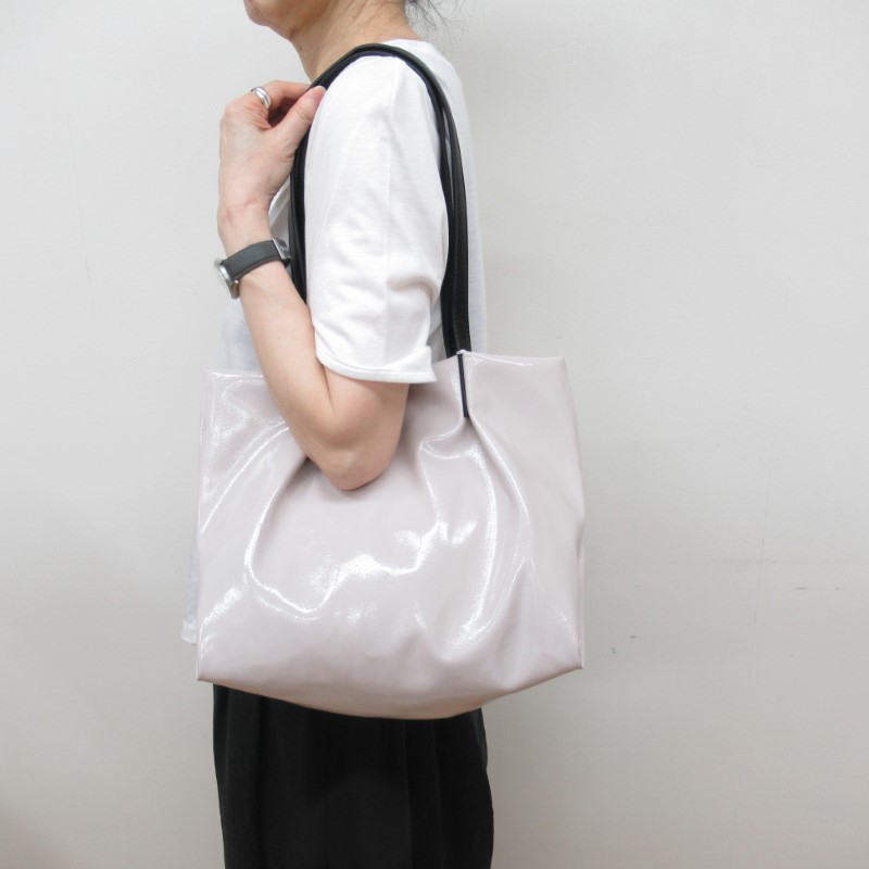 ソフトエナメル素材が新鮮なデザインのバッグ。