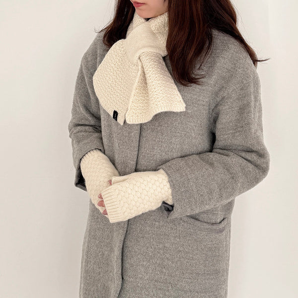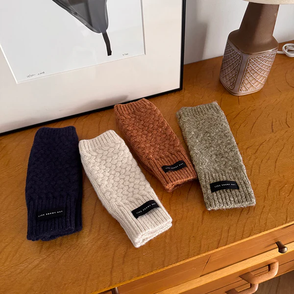 冬らしいニット風のバスケット編みがナチュラルでかわいらしいアームウォーマー。