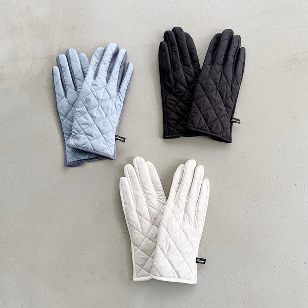上品なつや感のある生地にキルティングがほどこされた手袋。