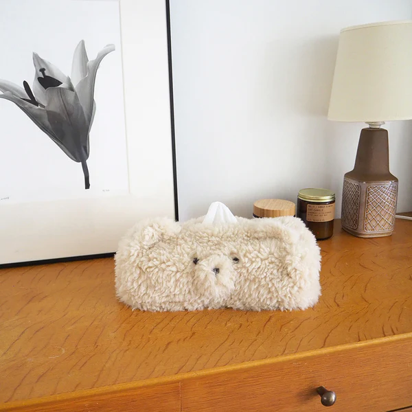 まるでぬいぐるみのようなもこもこテディベアフェイスのティシューカバー。