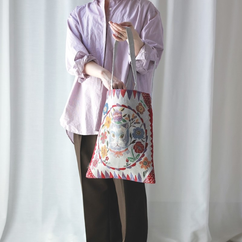 Nathalie Lete ナタリーレテ Rectangle tote bag Blue cat/511361