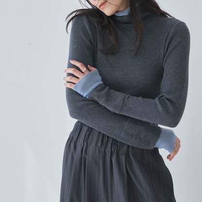 Audrey and john wad レイヤード袖配色タートルネックニット /CGY160
